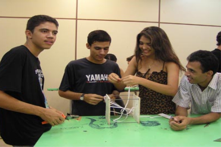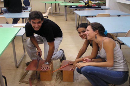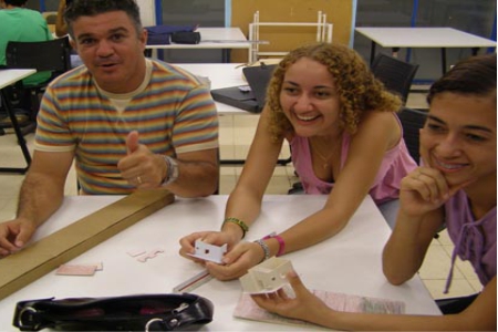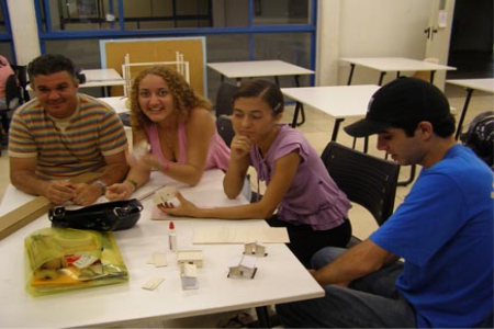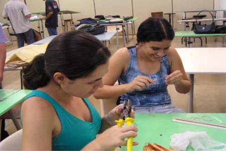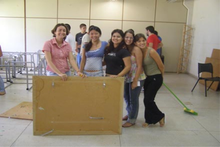 Mutirão para plastificar as pranchetas.